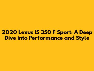 Hey guys! Let's talk about the 2020 Lexus IS 350 F Sport. This car is a total head-turner, and for good reason! It's got that perfect blend of sporty performance, luxurious comfort, and head-turning style that Lexus is known for. We're going to dive deep into the specs, features, and everything else you need to know about this awesome ride. Get ready to be impressed!