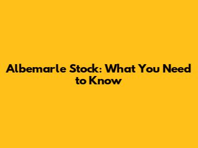 Albemarle Stock: What You Need To Know