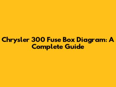 Chrysler 300 Fuse Box Diagram: A Complete Guide