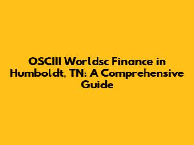 OSCIII Worldsc Finance In Humboldt, TN: A Comprehensive Guide