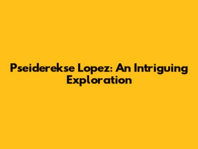 Pseiderekse Lopez: Unveiling The Enigma