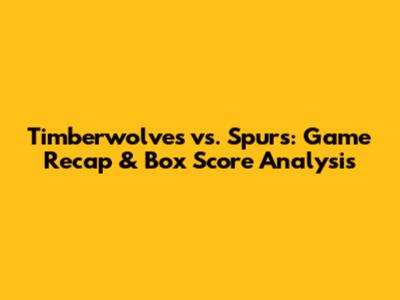 Timberwolves Vs. Spurs: Game Recap & Box Score Analysis