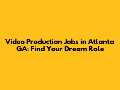 Video Production Jobs In Atlanta GA: Find Your Dream Role